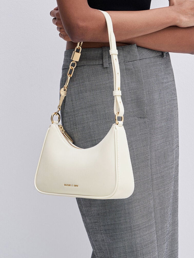 กระเป๋าถือสีดำสุดคลาสสิกที่มาพร้อมดีไซน์เก๋ไก๋ ด้วยรูปทรงสี่เหลี่ยมคางหมูเพรียวบางและมุมโค้งมน กระเป๋าใบนี้จึงมีพื้นที่กว้างขวางสำหรับใส่สิ่งของจำเป็นและอื่นๆ อีกมากมาย สีดำล้วนเข้ากับทุกชุดได้อย่างลงตัว ขณะที่ตัวล็อคและพวงกุญแจดีไซน์เก๋ไก๋เพิ่มเสน่ห์ให้คุณโดดเด่นไม่เหมือนใคร