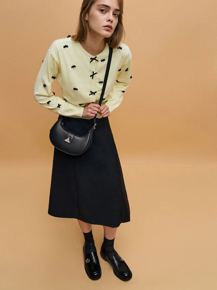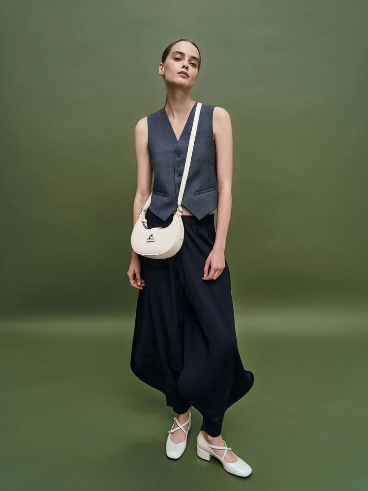 กระเป๋า Trice รุ่นปรับโฉมใหม่สำหรับฤดูกาลใหม่ กลับมาพร้อมผิวเคลือบโลหะสีเงินสุดอินเทรนด์ ทำให้เป็นกระเป๋าที่เหมาะสำหรับงานปาร์ตี้ ออกไปเที่ยวกลางคืน และงานเลี้ยงส่งท้ายปี ด้วยรูปทรงโค้งมนเพรียวบาง กระเป๋าใบนี้โดดเด่นด้วยรายละเอียดแถบคาดเอว ประดับด้วยรูปทรงสามเหลี่ยมอันเป็นเอกลักษณ์ เพิ่มความหรูหรา กระเป๋ามาพร้อมสายสะพายไหล่แบบถอดได้สองเส้น – เส้นสั้นหนึ่งเส้นและเส้นยาวหนึ่งเส้น – ช่วยให้คุณใช้งานได้หลากหลายสไตล์